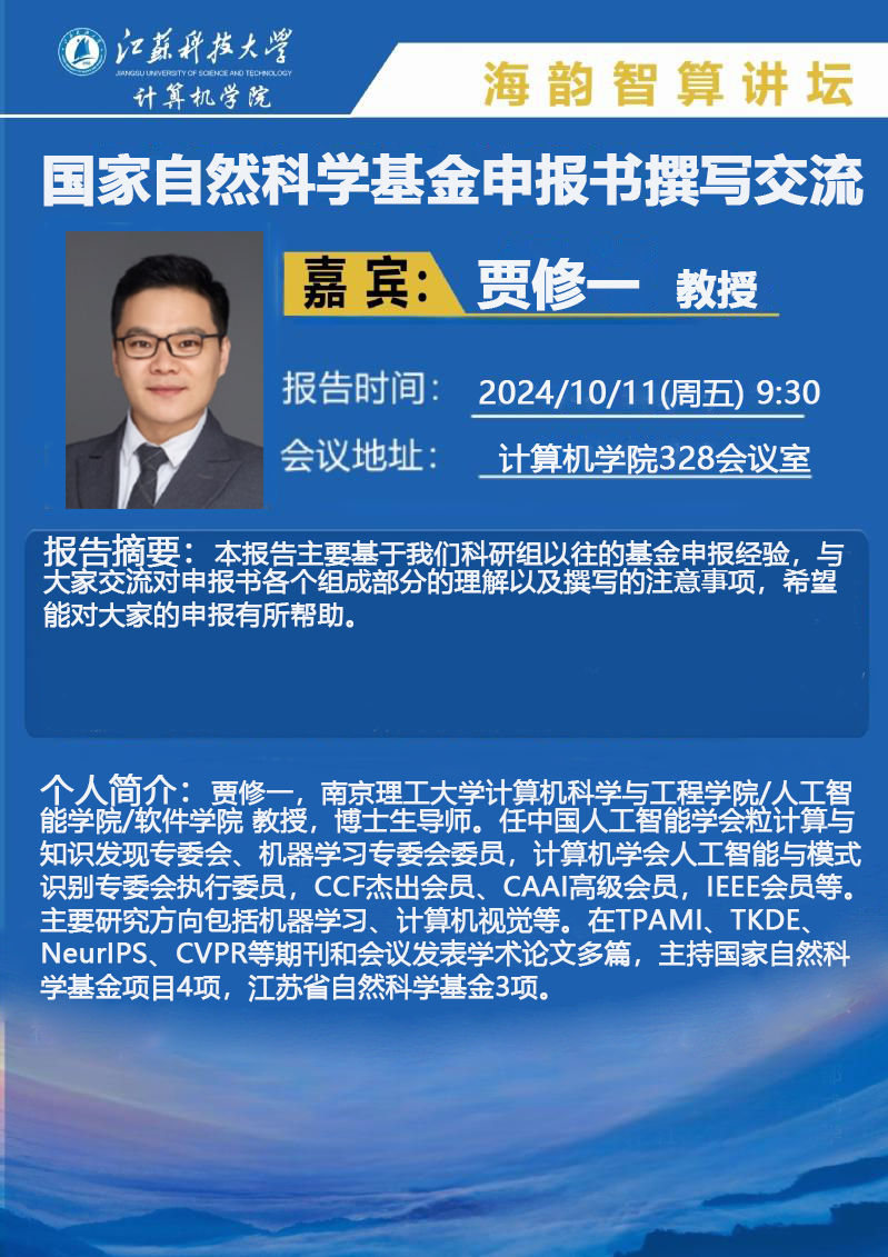 海韵智算讲坛:(贾修一)国家自然科学基金申报书撰写...