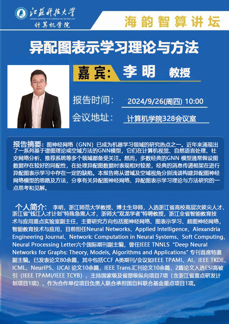 海韵智算讲坛:(李明)异配图表示学习理论与方法