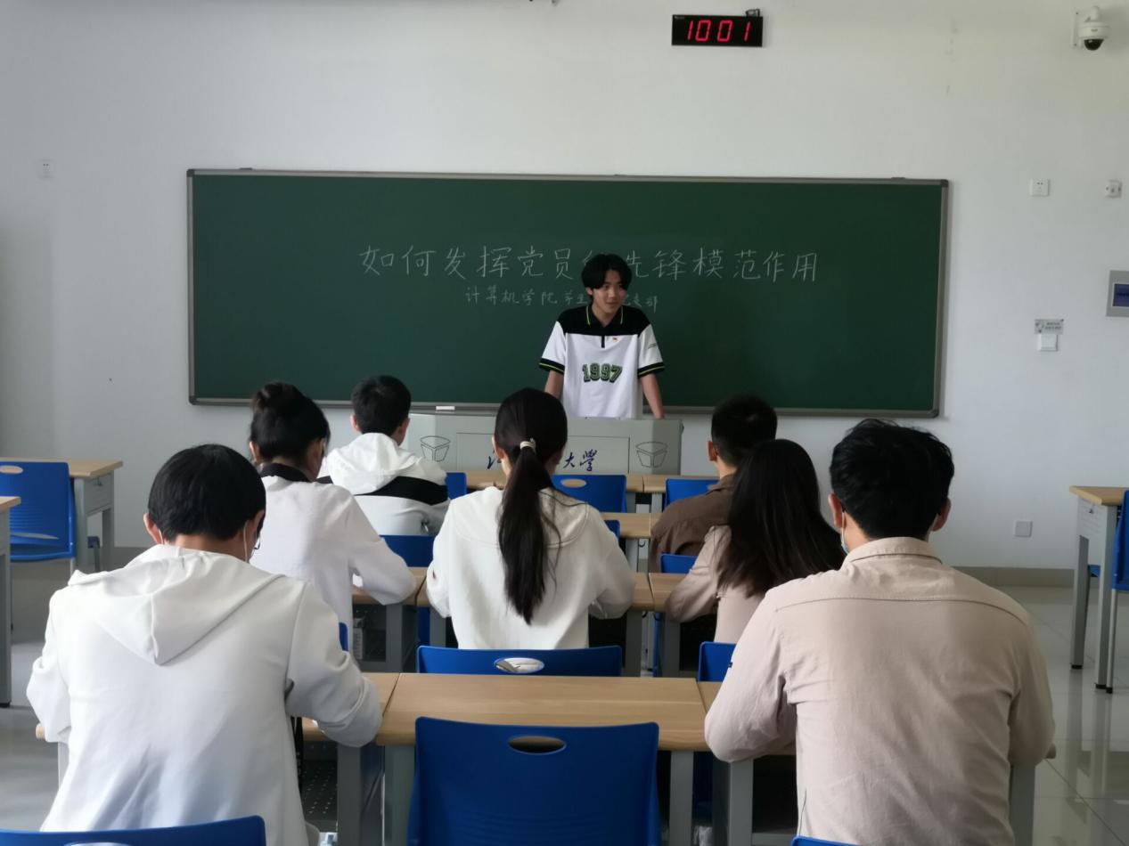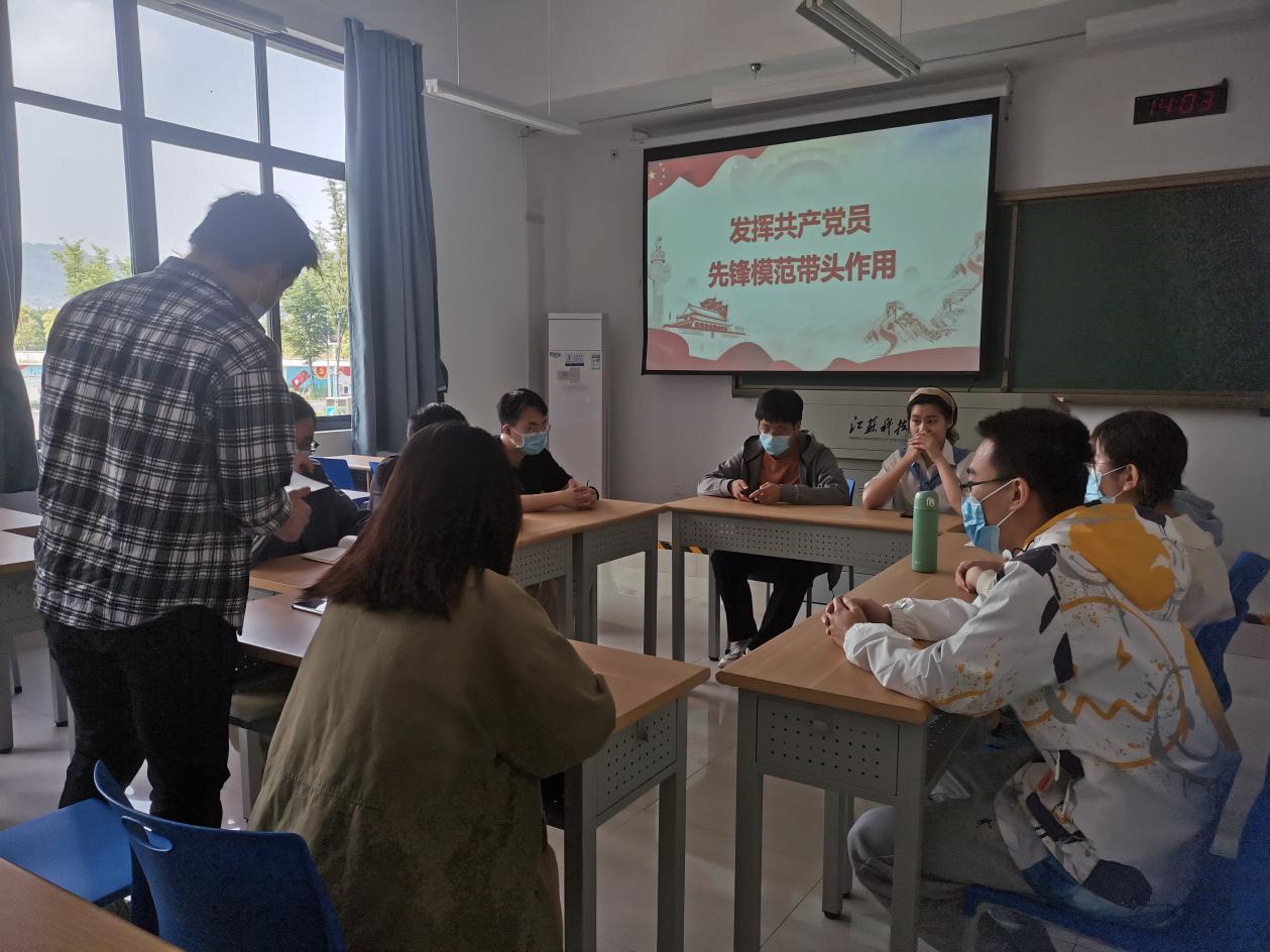 2022年5月8日,计算机学院、电子信息学院分党校在预备党员培训过程中,就预备党员如何发挥党员先锋模范作用开展热烈讨论活动。