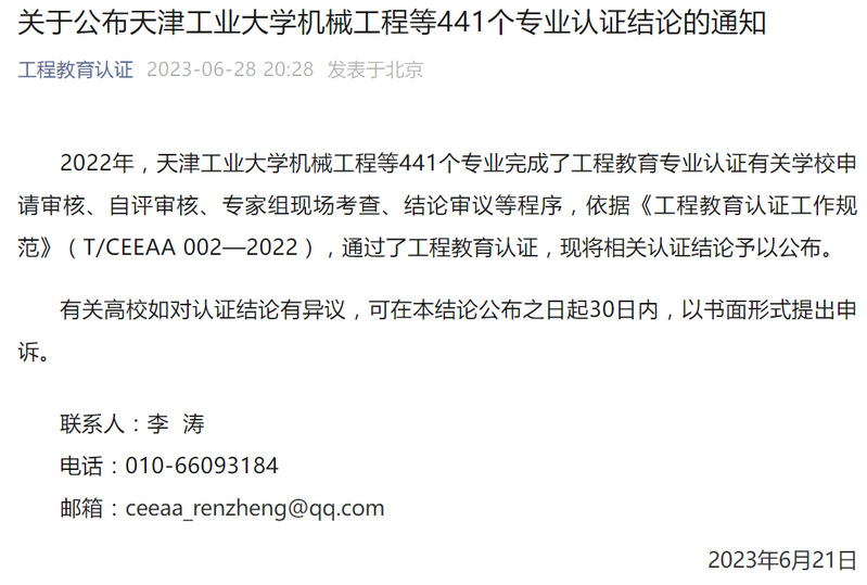 近日,中国工程教育专业认证协会发布《关于公布天津工业大学机械工程等441个专业认证结论的通知》。星空网官方站网页版,星空(中国)的计算机科学与技术专业名列其中,认证有效期为6年(2023年1月至2028年12月)。这标志着计算机科学与技术专业的人才培养质量实现了国际实质等效,进入全球工程教育的“第一方阵”。