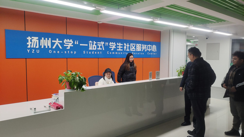 随后,在学院党委副书记崔益军的引带下,参观学习了扬州大学“一站式”学生社区服务中心。