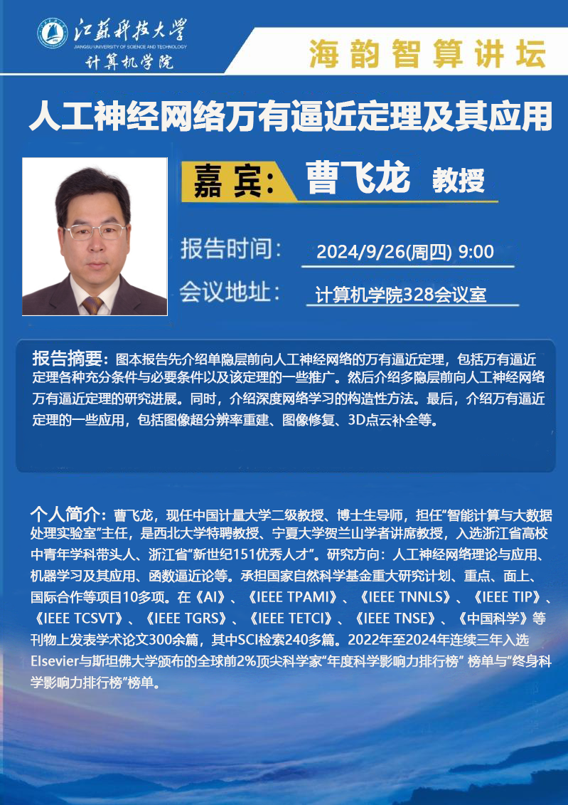 海韵智算讲坛:(曹飞龙)人工神经网络万有逼近定理及其应用