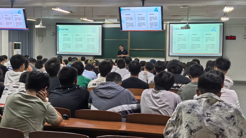 活动中,束鑫老师从理论与实践结合的角度,详细规划了大学四年的学习路径:大一阶段打牢编程基础,学习语言语法和基本算法并创建完成个人博客;大二阶段深度参与团队项目,通过软考初级,积累项目经验和专业认证;大三阶段选定领域赛道,完成企业实习,提升专业技能;大四阶段具备独立交付子系统能力,续写技术博客,形成可检索数字履历。他强调,学生在学习过程中要时刻关注技术前沿,通过不断实践为未来职业发展做好准备。束鑫老师鼓励学生们参加技术竞赛,倡导以实践检验理论,积累更多的项目经验和解决问题的能力。